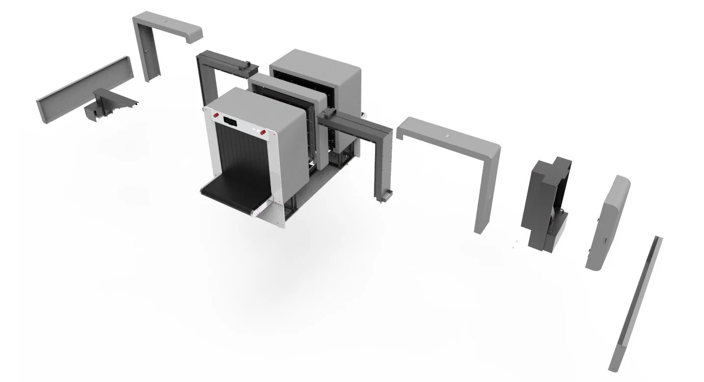 Our initial efforts, shown to the right, focused primarily on modularity accessible at the customer level. As our design developed, we shifted the focus towards modularity at the manufacturing level, as this was a more useful and cost saving goal for Gilardoni
